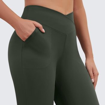 Womens Wide Leg Yoga Pants Crossover Work Dress Pants Lounge Sweatpants Casual Trousers with Pockets