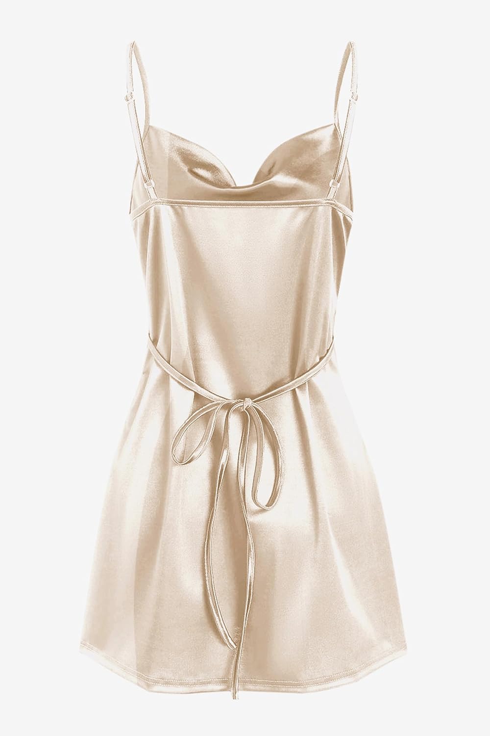 Women Satin Sleeveless Spaghetti Strap Mini Dress Sexy Slip Cowl Neck Silky Cocktail Party Dresses