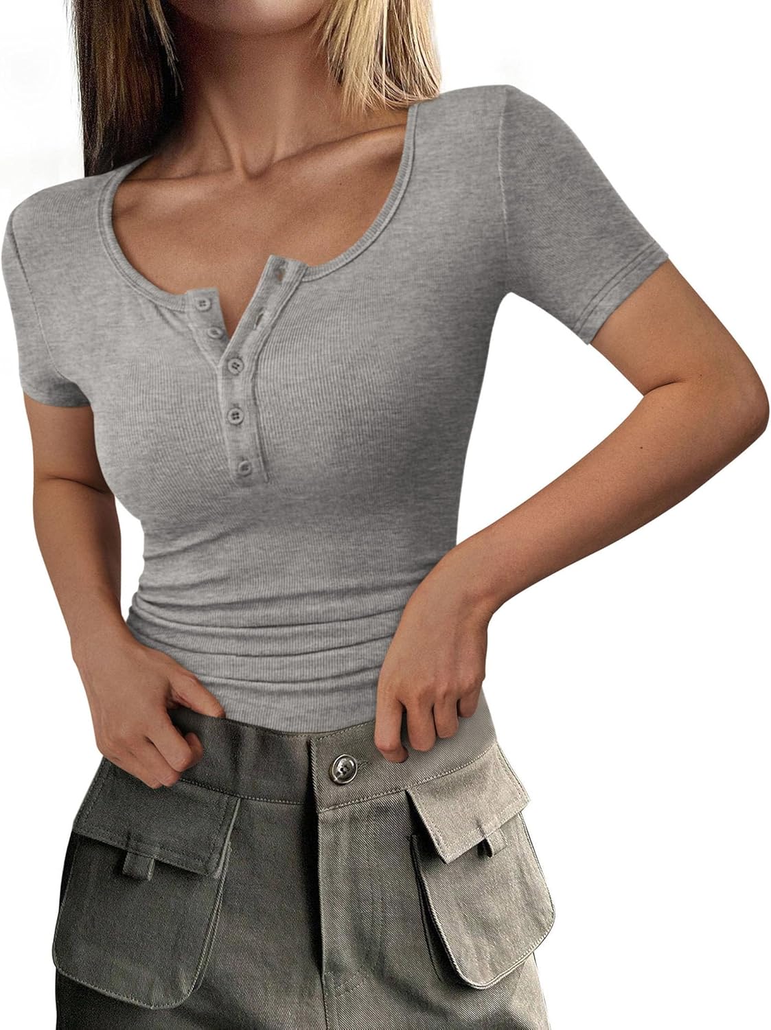 - FEATURES: Short Sleeve Womens Tee Shirt; Henley Shirts for Women; Button Up Summer Tops; Fitted Tops For Women; Ribbed Casual Tops For Women; Solid Color Ladies Tops And Blouses; Going Out Tops For Women; Spring Women’s T-Shirts; Basic Tops For Woman
